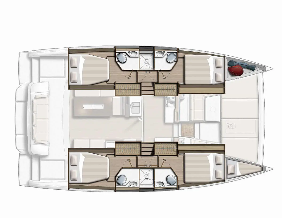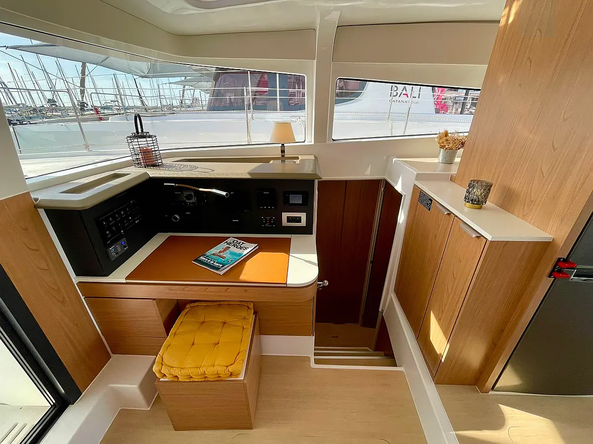 Refrigerator, Electric winches, Cockpit cushions, Inverter, Water maker, Air condition
