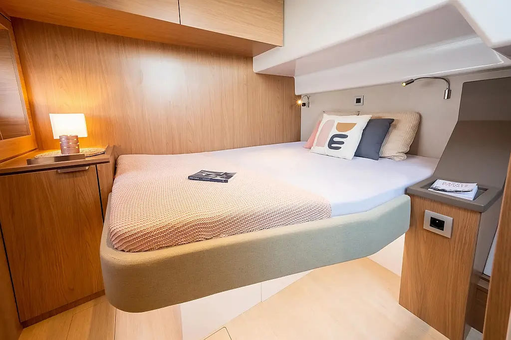 Coffee maker, Electric toilet, Generator, Sprayhood, Bimini, Electric winches, Dinghy, Solar Panels, Cockpit speakers, Refrigerator, Teak deck, Heating, Hydraulic gangway, Water maker, Dishwasher
