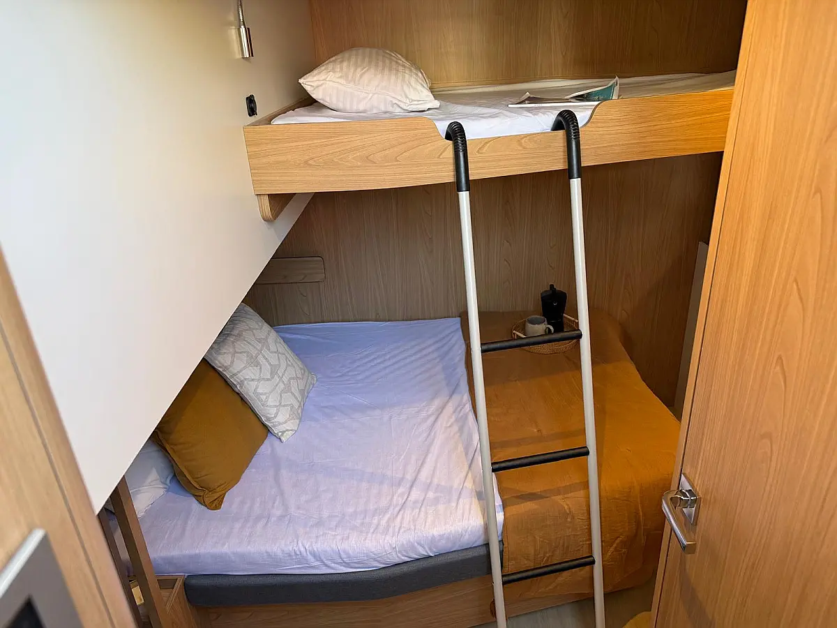 Electric toilet, Water maker, Refrigerator, Dinghy, Inverter, Bimini, Teak Cockpit, Electric winches