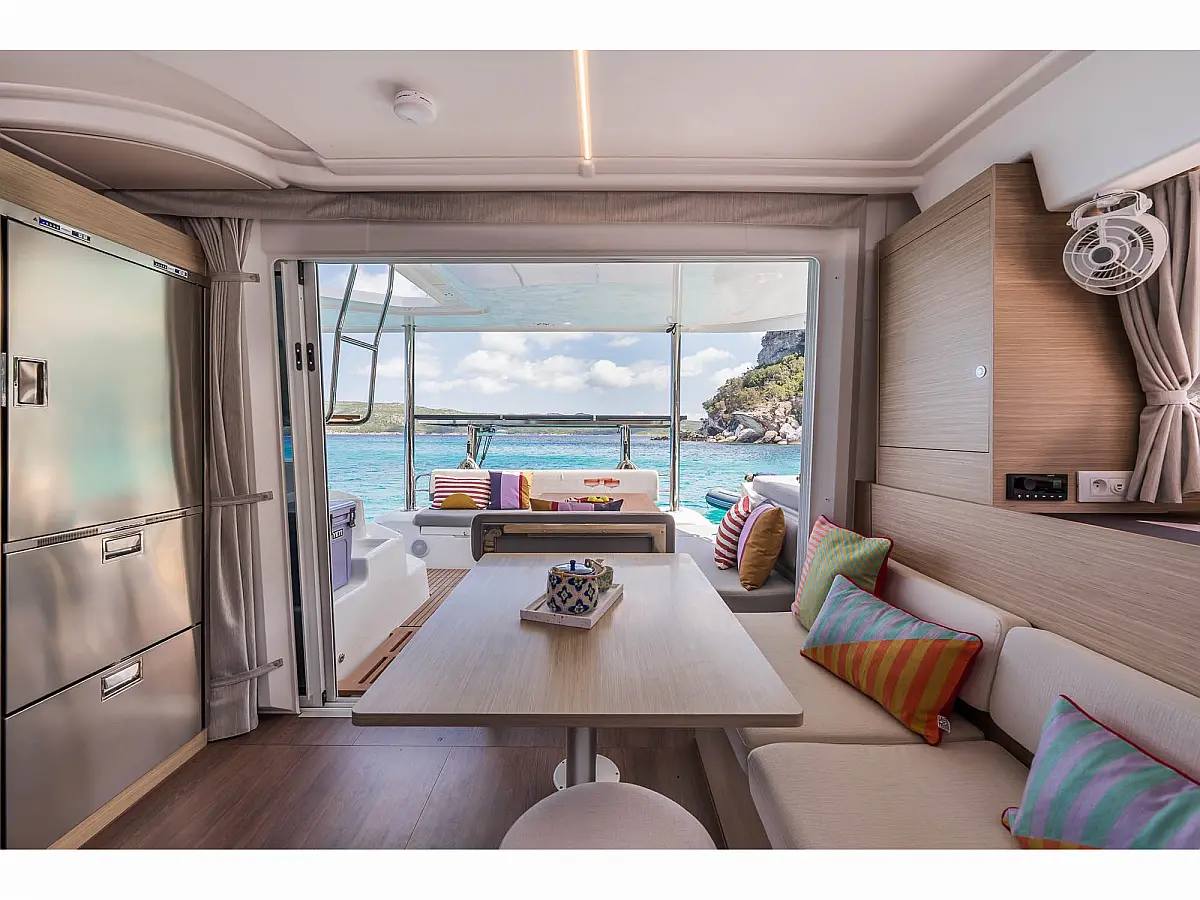 Air condition, Refrigerator, Generator, Cockpit cushions, Electric winches, Electric toilet, Bimini, Flybridge, Dinghy, Outboard engine